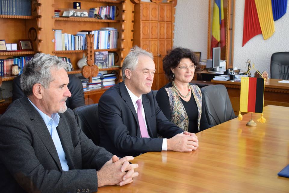 Scopul vizitei a fost de a cunoaște reprezentanții administrației locale și a discuta despre posibilitățile încheierii unor parteneriate economice sau culturale. Cu această ocazie, diplomatul a premiat elevii Liceului Teoretic German "Johann Ettinger", Colegiului Naţional “Doamna Stanca” şi Colegiului Național „Kölcsey Ferenc”, care au obţinut rezultate bune la concursurile naţionale de limba germană.