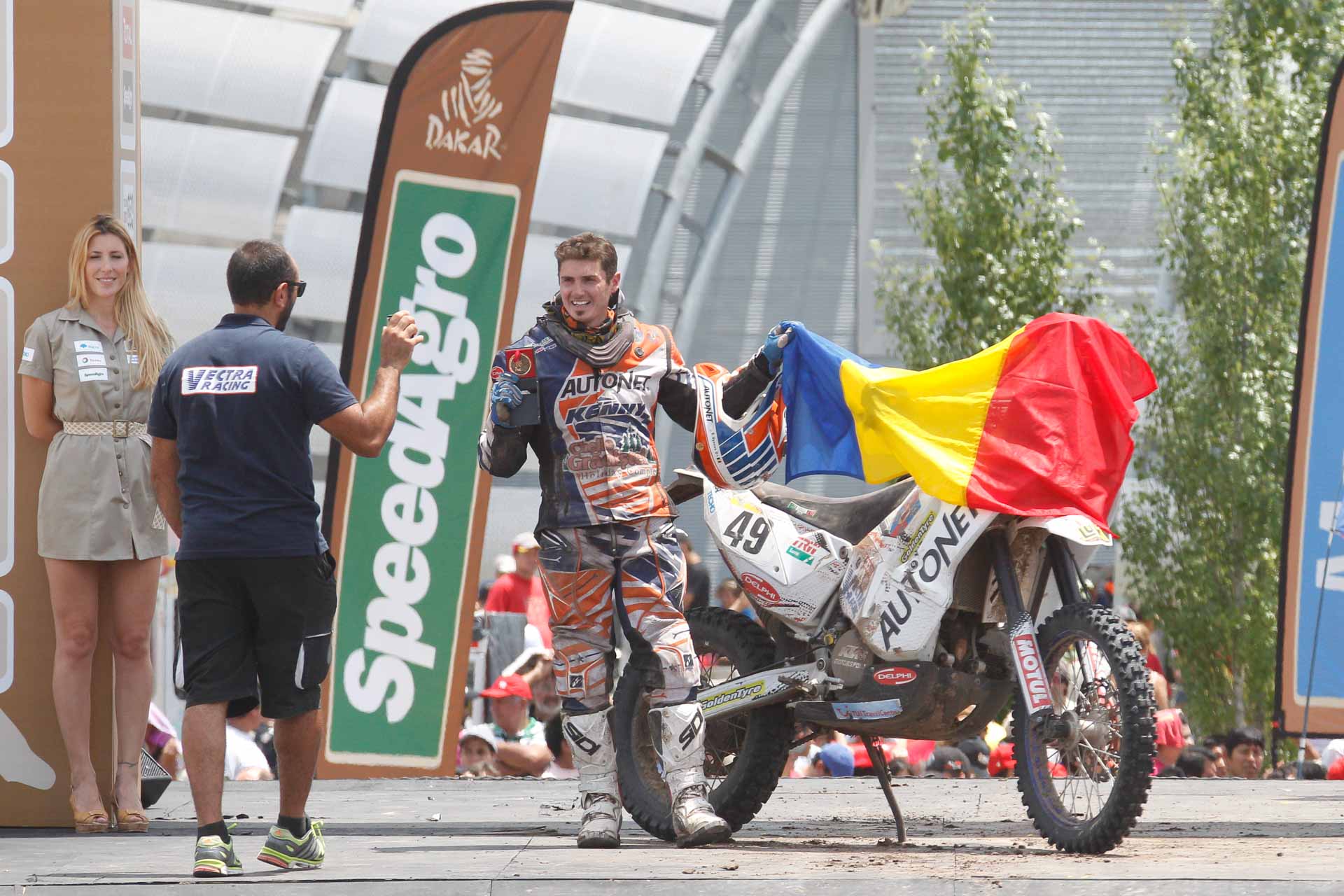 ”Intermotor Line Satu Mare (Szabi si Laci) imi pregatesc motocicleta de raliu pentru a 8-a mea participare la Dakar ce va incepe pe 6 ianuarie din Lima. Tot ei vor veni cu mine in America de Sud sa imi ofere asistenta. Motorul a fost facut de la A-Z, schimbat vilbrochen, piston, rulmenti ambielaj + tot ce era nevoie”, a mai punctat Gyenes, care ieri a fost la Le Havre pentru a-şi îmbarca motocicleta spre America de Sud.