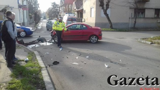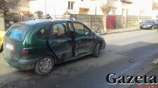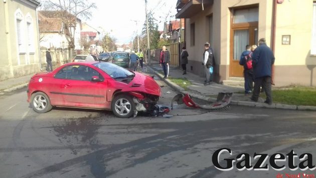 Aflându-se la volanului unui autoturism Peugeot, un bărbat a intrat în intersecție și a lovit în plin un autoturism Renault. În urma impactului, Renaultul a fost proiectat într-un alt autoturism parcate pe stradă.