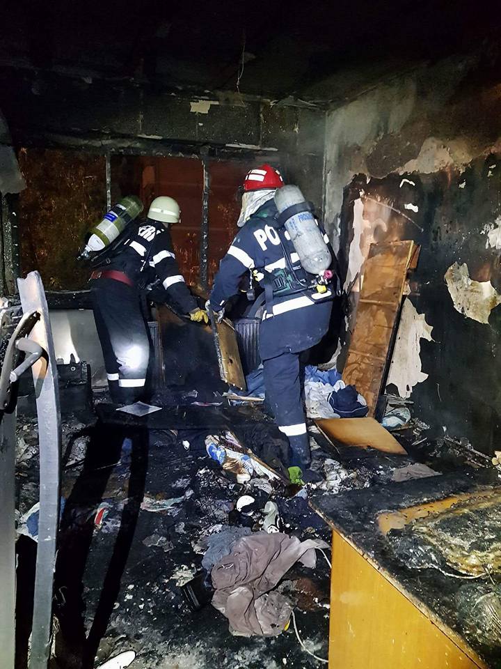 La momentul sosirii forțelor de intervenție, se degaja o mare cantitate de fum din apartament și ardeau materialele combustibile dintr-o încăpere.