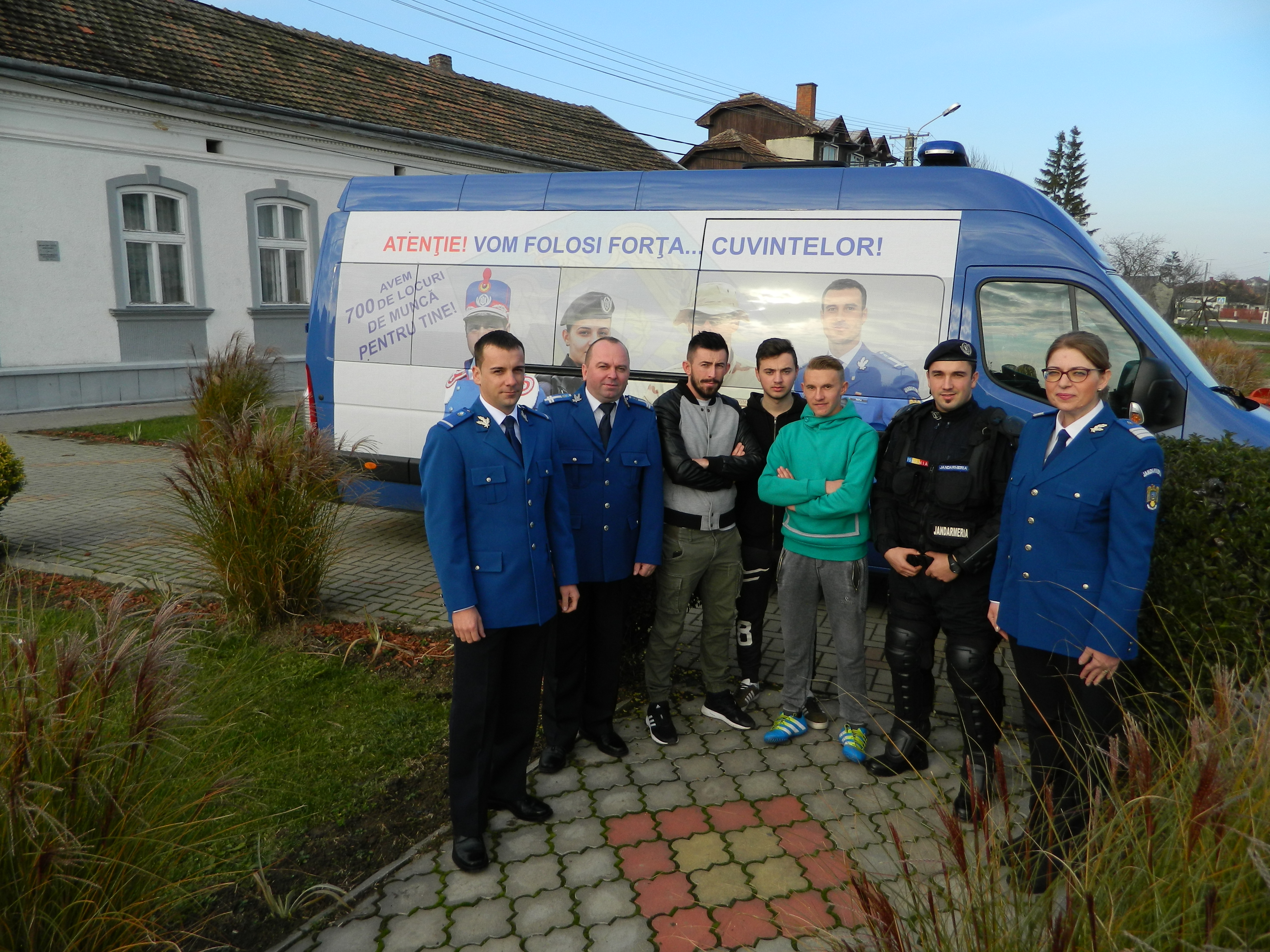 Jandarmii sătmăreni au însoţit autospeciala de promovare a profesiei de jandarm în localitatea Ardud, municipiul Satu Mare și în municipiul Carei, unde au împărţit pliante şi au prezentat condiţiile de participare la concursurile de admitere în şcolile de subofiţeri jandarmi, tinerilor prezenţi, care au fost foarte deschişi si receptivi la informaţiile transmise.