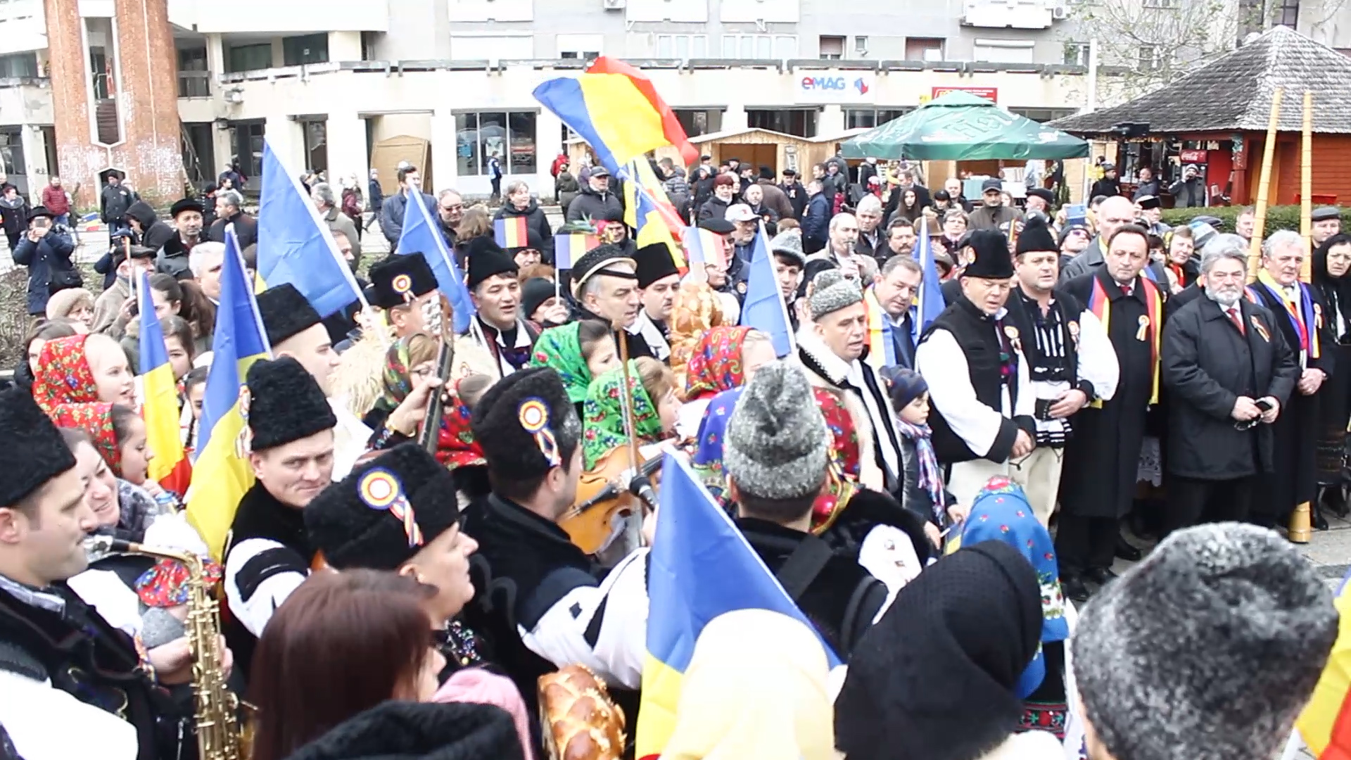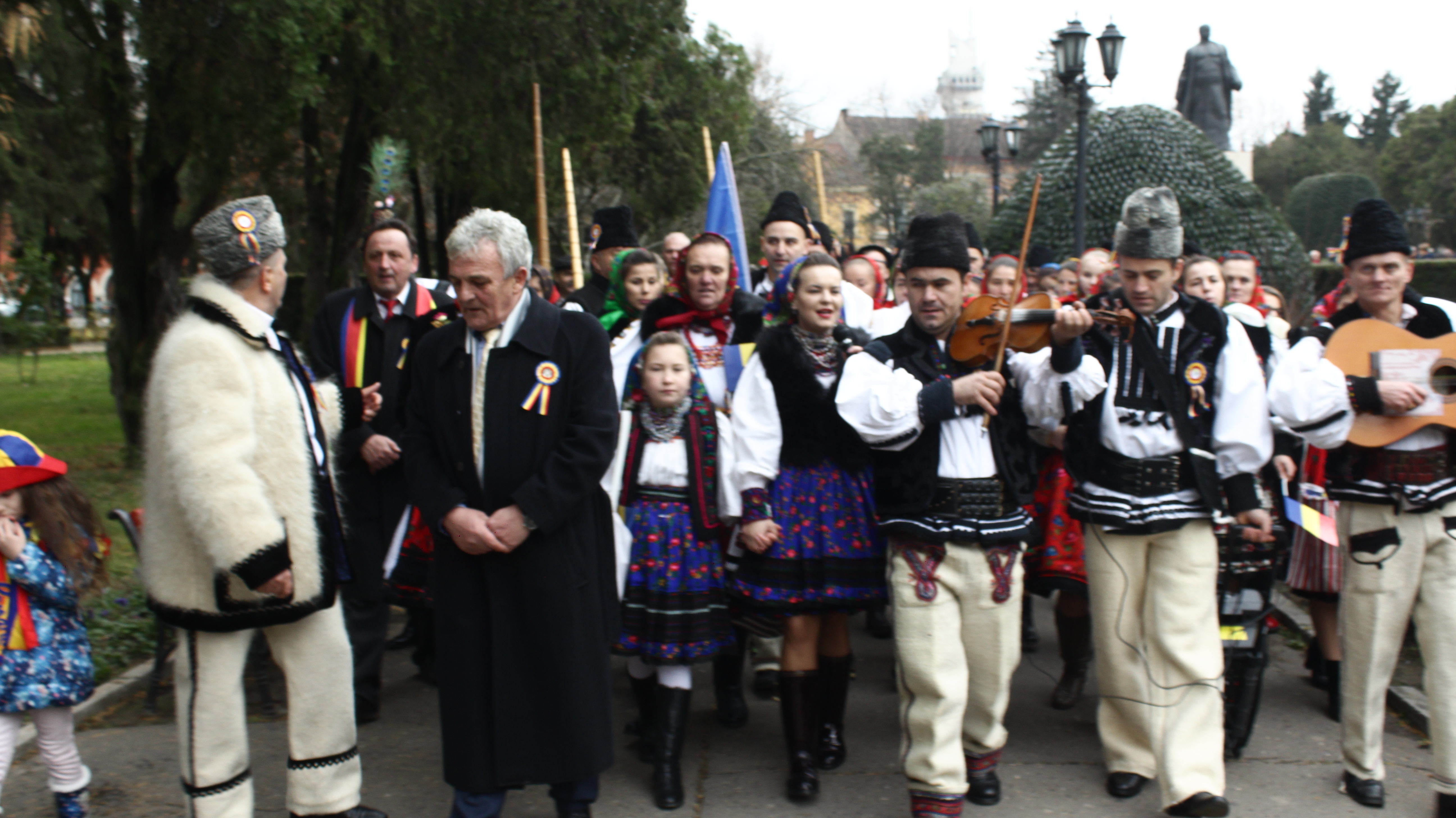Coroane de flori, cinstite cu colinde, cântece patriotice și Hora Unirii După depunerea de jerbe de flori și defilarea militarilor pe B-dul dr. Vasile Lucaciu, reprezentanții Asociației socio-culturale ȚARA OAȘULUI, președintele VASILE CIOCAN și prim-vicepreședintele VASILE LUCUȚ, MIRCEA DOBRA – președintele Societății cultural-patriotice AVRAM IANCU Satu Mare și IONEL COSTESCU – președintele Asociației CODRENII au depus coroane de flori la statuia tribunului dr. VASILE LUCACIU. Au urmat apoi momente emoționante, care s-au derulat în Piața Libertății Parc.