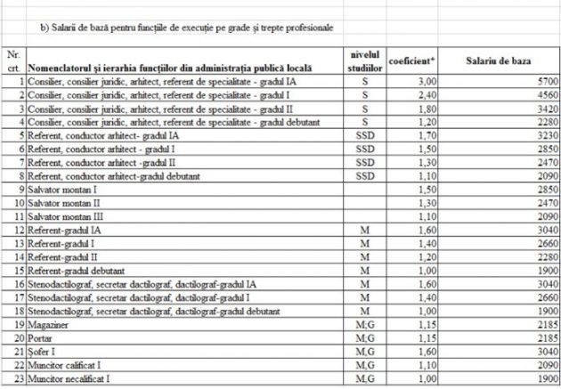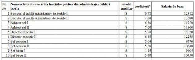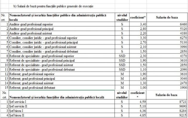 Iată tabelul cu salariile din Consiliul Județan și instituțiile subordonate: