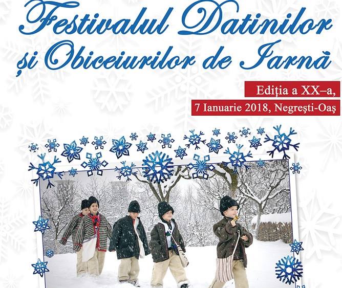 A XX-a ediție a Festivalului Datinilor şi Obiceiurilor de Iarnă va avea loc în 7 ianuarie 2018, la Negrești-Oaș. La tradiționalul eveniment sunt așteptate 23 de ansambluri folclorice, cete și grupuri de colindători din Țara Oașului și din zonele etnografice învecinate: Codru, Maramureș, Chioar, dar și invitați din Ucraina.