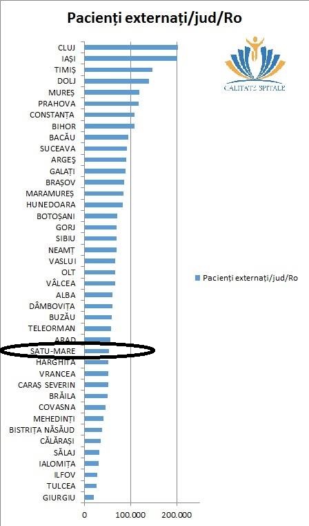 Față de Cluj și Iași, câte 200 de mii de externări, Timiș 140 de mii, Dolj - 130 de mii sau Bihor - 110 mii, Maramureș - 85 de mii sau Sălaj - 35 de mii.