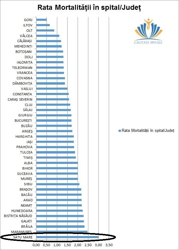 Conform acestui studiu, făcut public în luna mai a anului 2017, rata mortalității în spitalele din județul Satu Mare era de 3%. Cu această cifră, Sătmarul era lider autoritar, fiind urmat, la mare distanță, de Maramureș, cu o rată de circa 2,45%, Brăila, 2,30%, sau Galați, 2,25%.