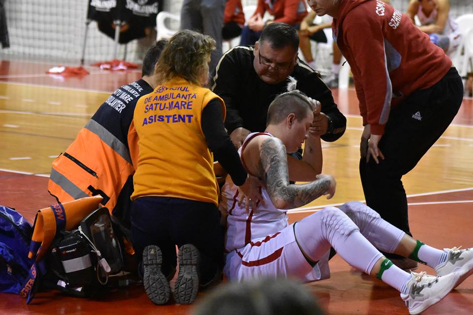 În sfertul patru lituanianca Marina Solopova s-a accidentat și le-a dat emoții suporterilor. Aceasta a rămas întinsă pe parchet după un duel la recuperare cu două dintre jucătoarele Aradului. ”A primit un cot în gât și și-a înghițit limba”, a explicat după joc kinetoterapeutul Romulus Boțoiu. Intervenția promptă a acestuia și a staff-ului medical de pe ambulanță a readus-o pe Solopova în scurt timp în teren. Iar evoluția ei pe final a fost decisivă în obținerea victoriei.