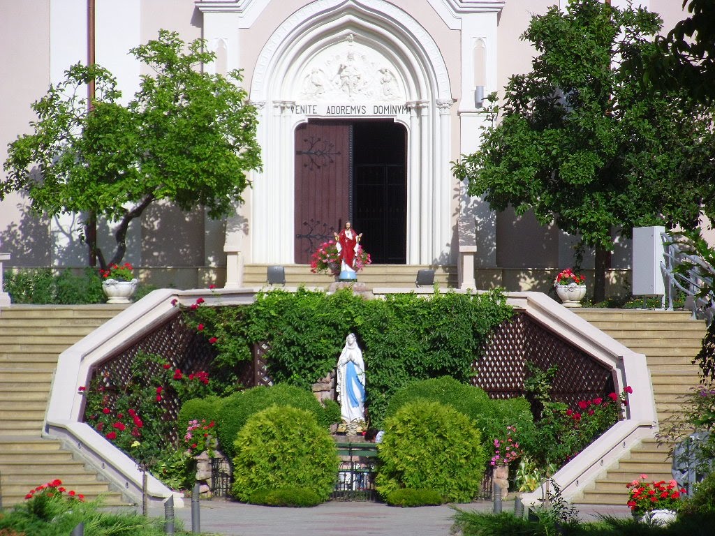 Istoric Înainte de anul 1711, în apropierea bisericii de azi a existat Biserica Cetăţii închinată în cinstea Maicii Domnului. Din unele ruine rămase din zidurile vechi se poate deduce că vechea biserică a fost construită în stil gotic. Lângă biserică a fost şi cimitirul cetăţii. Prima construcţie certă a locului actualei biserici, aflată în imediata apropiere a bastionului nord-vestic al cetăţii pentagonale a Sătmarului, numită colina toboşarilor, a fost capela Calvaria construită în anul 1844 de către episcopul Hám János, după planurile lui Tischler Albin, canonic titular şi paroh al comunei Urziceni (jud. Satu Mare). În acest perimetru au fost construite o serie de clădiri ce au servit ca reşedinţă episcopală în prima jumătate a secolului al XIX-lea. Tot după proiectele lui Tischler Albin s-au construit, în faţa colinei, şi cele 14 staţii ale calvariei. Canonicul Albin Tischler este una dintre rarele personalităţi ale bisericii catolice din perioadă, care a practicat şi arhitectura, această faţetă a activităţii sale fiind subliniată şi de cele mai importante contribuţii referitoare la arhitectura neogotică a vremii. De numele lui se leagă mai multe proiecte de biserici, dintre care cele mai importante sunt biserica romano-catolică din Baia Sprie şi reconstrucţia ruinelor bisericii parohiale din Beregovo (Ucraina). Aceasta din urmă este una dintre primele biserici neogotice din regiune. Importanţa primei biserici Calvaria din Satu Mare se datorează tot acestui fapt, fiind de asemenea un exemplu important al neogoticului timpuriu din Ungaria perioadei respective. Despre imaginea acestei prime biserici, demolată la începutul secolului XX, ne stau mărturie, doar fotografiile vechi de la sfârşitul secolului al XIX-lea, începutul celui de al XX-lea.