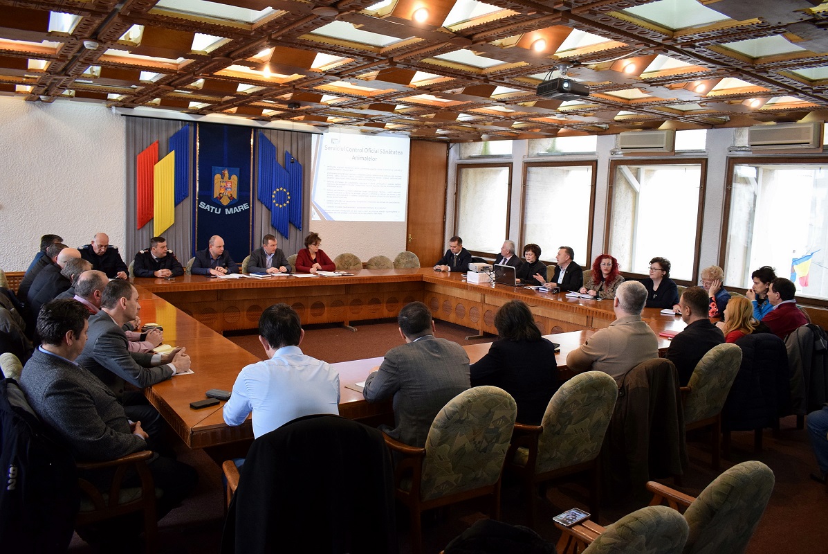 Directorul Direcției Sanitar Veterinare și pentru Siguranța Alimentelor (DSVSA) Satu Mare, Nicolae Dumuța, a prezentat astăzi, în cadrul ședinței Colegiului Prefectural, o informare privind măsurile întreprinse de către Direcția Sanitară Veterinară și pentru Siguranța Alimentelor Satu Mare pentru limitarea efectelor pestei porcine.