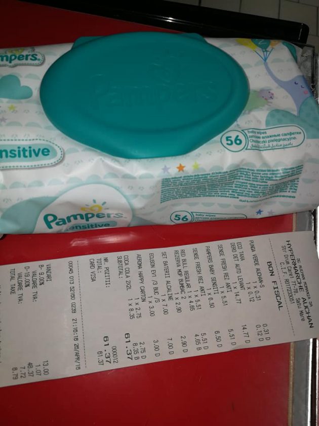 Sătmăreanca a cumpărat un set de șervețele umede care avea prețul de 5,80 lei la raft, dar la casă i s-a luat 6.50 lei.