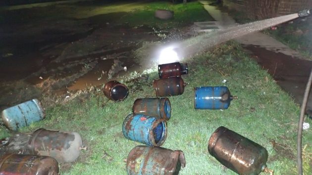 Până la sosirea forțelor profesioniste, rastelul metalic era distrus în întregime, iar cele 18 butelii care se aflau în rastel au fost aruncate în urma deflagrațiilor la o distanță de aproximativ 50 de metri.