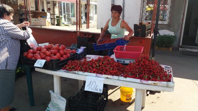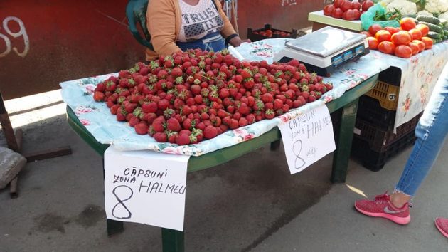 “Un kilogram de căpșuni îl dăm cu 12 lei. Sunt aduși din Halmeu și munciți din greu. Săptămâna acesta încă ținem de preț, de săptămâna viitoare îi vom da mai ieftin...s-ar putea să ajungă la 5 lei.” a spus una dintre comerciantele care vinde căpșuni.