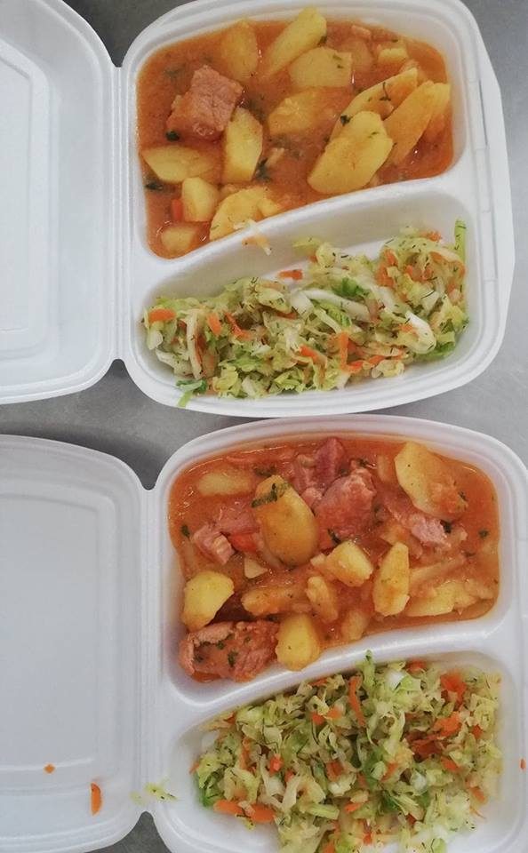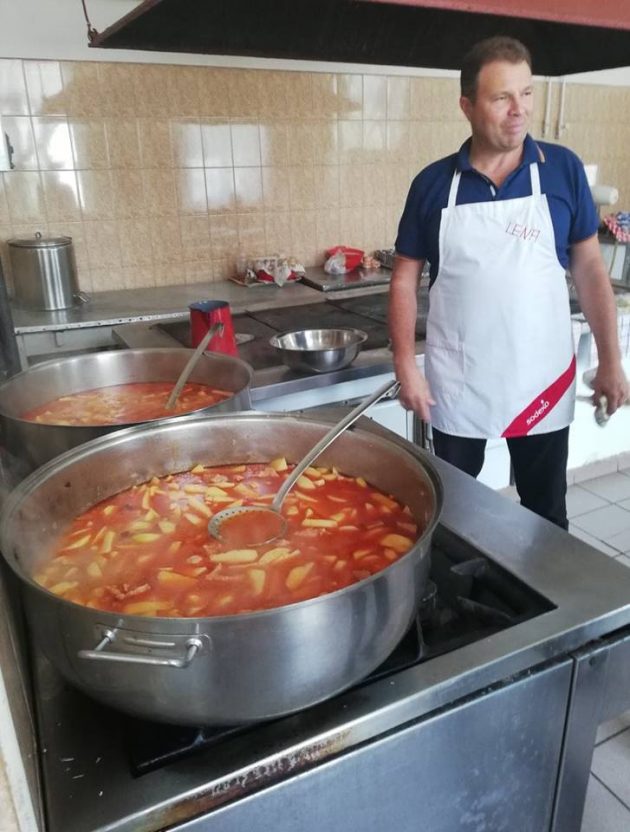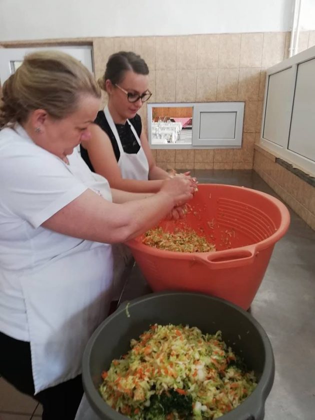 L-au numit pe Mihai chef și s-au apucat de pregătit peste 75 de porții de cartofi cu carne și șunculiță afumată. Nu au lipsit nici salata de varză și delicioasa prăjitură cu mere făcută d-na Cecilia.