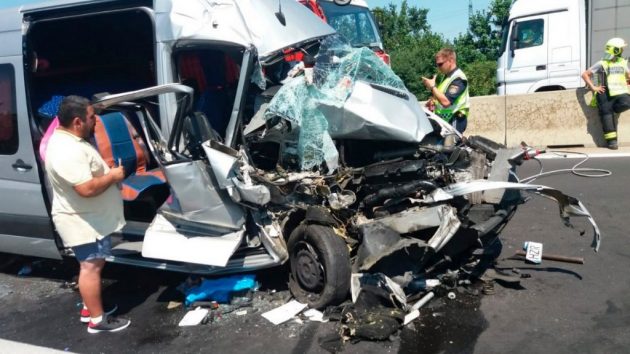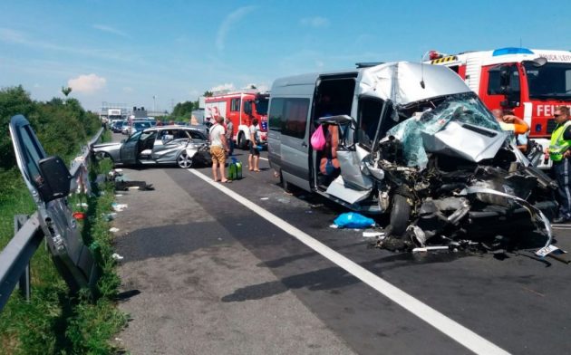 În urma celor două autovehicule se afla un microbuz plin cu români, a cărui șofer nu a apucat să frîneze la timp, a lovit autoturismul înmatriculat în România pe care l-a scos în decor, după care s-a lovit, în plin, de camionul slovac care, între timp, s-a oprit.În urma impactului, opt persoane au fost rănite, din care două, aflate în microbuz, se află în stare foarte gravă.