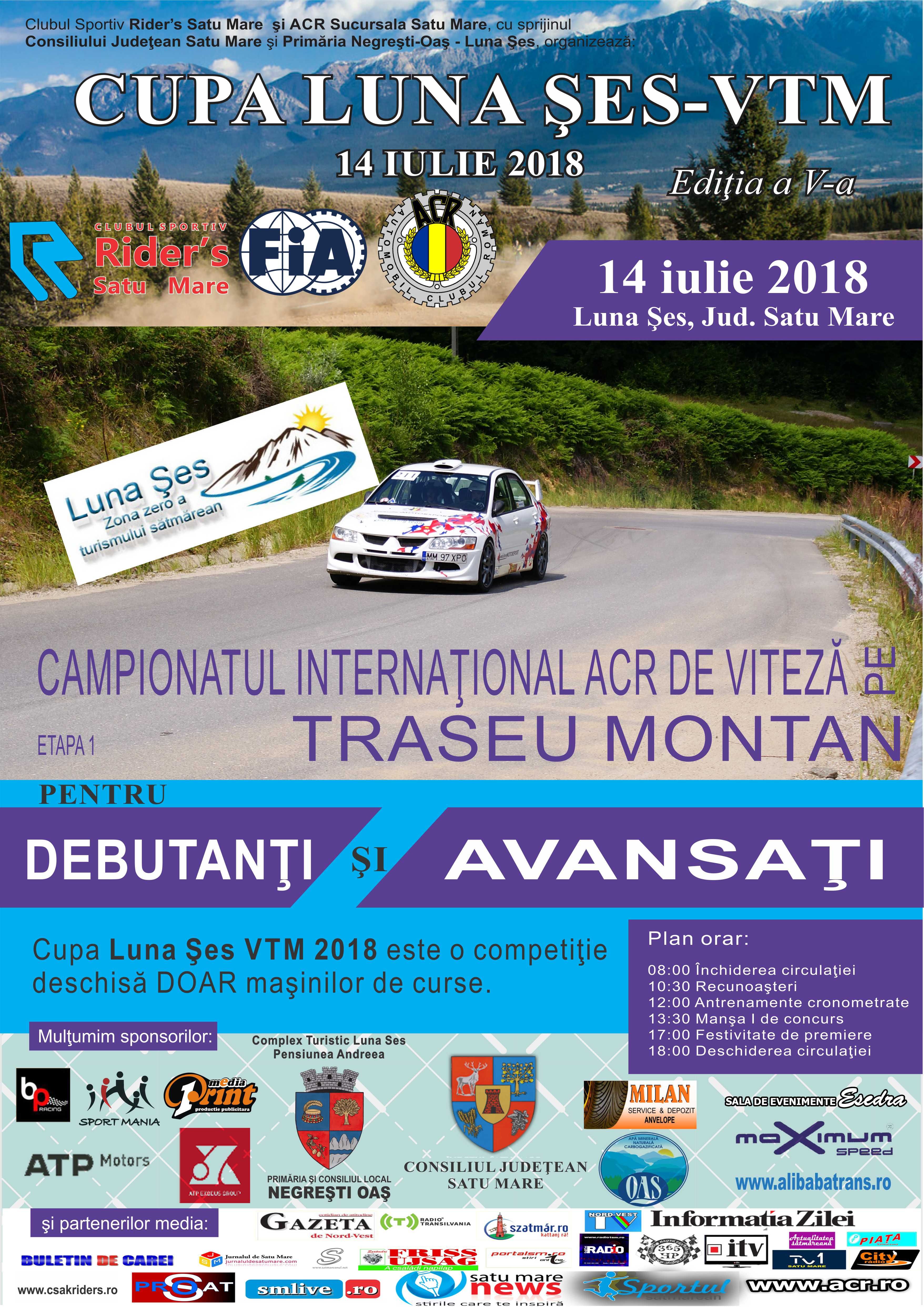 ACR Sucursala Satu Mare şi CS A-K Rider's Satu Mare cu sprijinul Primăriei Negreşti Oaş si a Consiliului Judeţean Satu Mare organizează, sub egida FIA, “CUPA LUNA ŞES - VITEZA PE TRASEU MONTAN - 2018”.