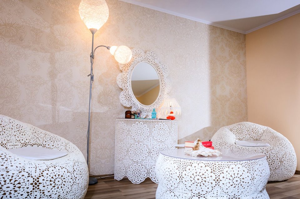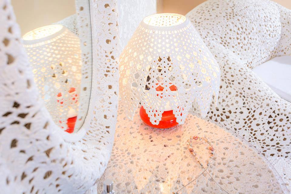 “Facem totul în familie, ajutată fiind de fiica mea Lavinia, care a terminat Liceul de Arte “Aurel Popp” din Satu Mare, în urma căruia a obținut diploma de tehnician artistic în Arte Plastice. Fiica mea face parte din Asociația Artiștilor Plastici din Satu Mare, alături de care participă la expoziții atât în țară cât și înafară. Tablourile ei sunt foarte frumoase și expresive, dar pe lângă asta se poate lăuda că a realizat primele tablori din lume la care și rama este creată tot manual din dantelă rigidizată și patinată în ton cu culorile din fondul tabloului, fiecare tablou fiind unic. Mai colaborez și cu alți designeri care includ în proiectele lor creațiile noastre. Ultimul proiect la care am colaborat este cofetăria Freandise din Cluj, unde în colaborare cu designerul Adina Popa am realizat cele șase abajururi mari din dantelă care sunt de mare efect în interiorul cofetăriei”, a adăugat Silvia Junjan.