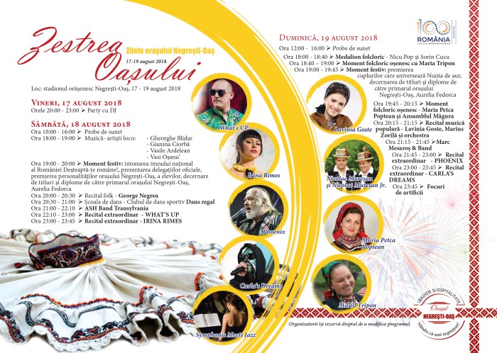 Programul Zilelor Orașului – Zestrea Oașului, pe ore:
