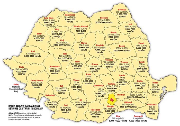 În momentul de faţă, nimeni nu ştie cu exactitate cât teren agricol din judeţ se află sub controlul străinilor, fie că este vorba despre arendare sau despre cumpărare. Până acum legea nu le permitea străinilor să cumpere teren ca persoană fizică, astfel că aceştia trebuiau să-şi înfiinţeze firme în România pentru a putea cumpăra terenuri. Acesta ar fi unul dintre motivele pentru care nu se ştie cu exactitate câte hectare de teren se află în proprietatea străinilor.