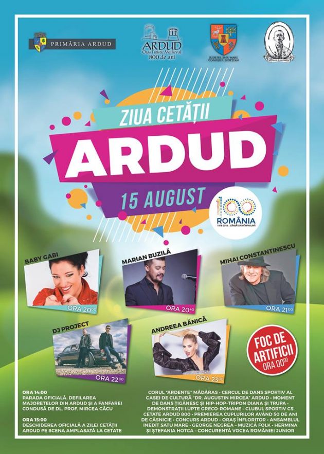 Primăria, Consiliul Local al oraşului, Asociația Culturală „Dr. Augustin Mircea" din Ardud cu sprijinul Consiliului Județean Satu Mare organizează o nouă ediție a Zilei Cetăţii Ardud (15 august 2018), după cum urmează: