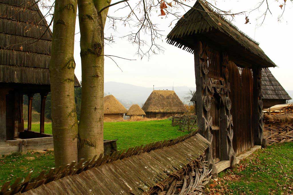 Casa maghiară din Câmpulung la Tisa a fost proprietatea familiei Naghi. Aceasta apare în documente în anul 1699. Casa ruteană din Poienile de sub Munte a aparţinut familiei Benzar Gavrilă, fiind o construcţie databilă din prima parte a secolului al XVIII-lea. Casa cuprinde două încăperi şi anume o tindă şi o cameră de locuit. În tindă găsim berbinţe şi cofe pentru lapte, tocul de la slatină, cântarul tip cumpănă, unelte şi ustensile, lăzi pentru cereale şi alimente, groapa pentru cartofi etc. Pereţii sunt din bârne masive din lemn de brad despicate în două şi sunt dispuse în sistemul “blockbau” încheiate în cheutori. Casa are în faţă o prispă din lut, dar şi o bancă încastrată în tălpile casei. Tot aici mai găsim aşa numita “klicină”, grăjduţ pentru vite, un şopru pentru fân şi un spaţiu de depozitare. Muzeul se întinde pe o suprafaţă de câteva hectare, iar pe lângă construcţiile din lemn mai există şi alte lucruri.