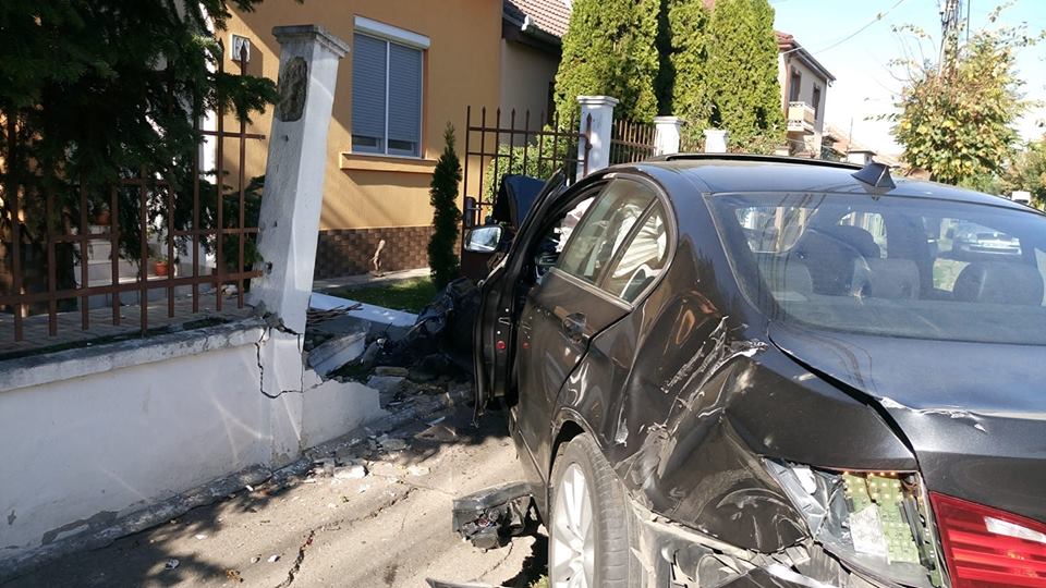 În urma impactului, ambele mașini au fost serios avariate, iar autoturismul BMW s-a oprit într-un gard pe care l-a și distrus.