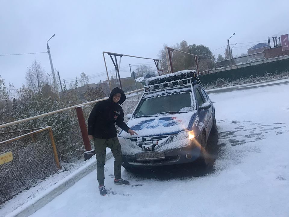 „Dragi prieteni! Am trecut de Munții Urali. Pozele atașate au fost făcute ieri si azi. Se vede foarte bine cum s-a schimbat vremea ajungând în Siberia! Mâine continuăm drumul spre Novosibirsk și dacă ne ajută bunul Dumnezeu vineri vom ajunge la Lacul Baikal în Irkutsk! Vă îmbrățișăm!”, scriu cei doi aventurieri, tată și fiu, pe Facebook.