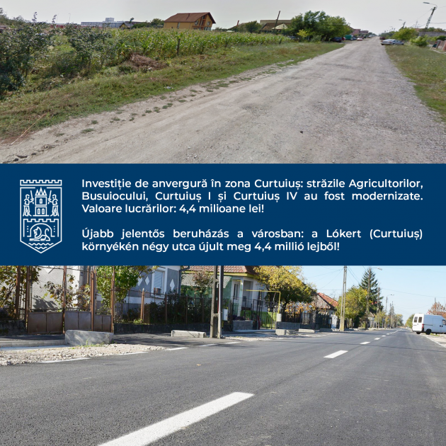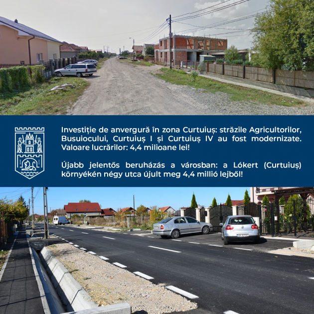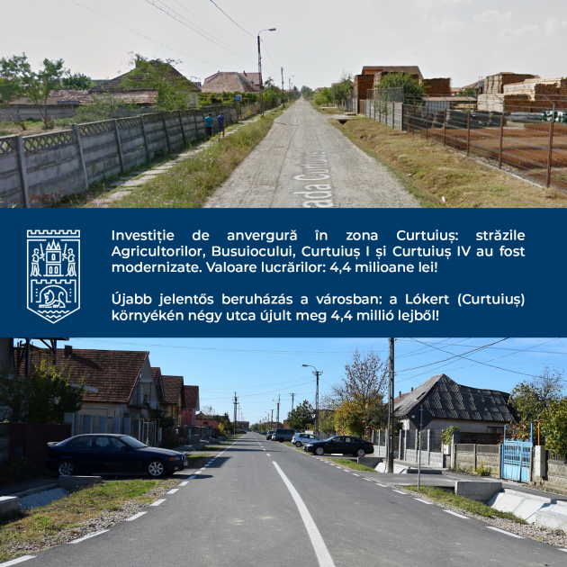 “Am făcut o investiție de anvergură în cartierul Curtuiuș pentru care s-au cheltuit din bugetul local peste 4,4 milioane de lei pentru a moderniza și reabilita complet o zonă care până acum a fost total neglijată. Am reabilitat patru străzi din cartierul Curtuiuș, fiind realizate lucrări de infrastructură a drumului, amenajare trotuare şi accese proprietăți și bineînțeles canalizare pluvială. Continuăm să investim în infrastructura orașului și vom interveni și în alte zone neglijate ale orașului!”, a declarat primarul Kereskényi Gábor.