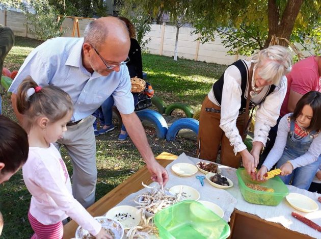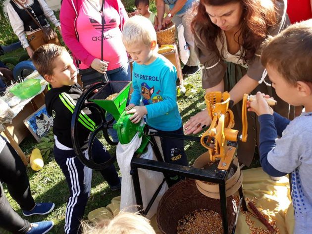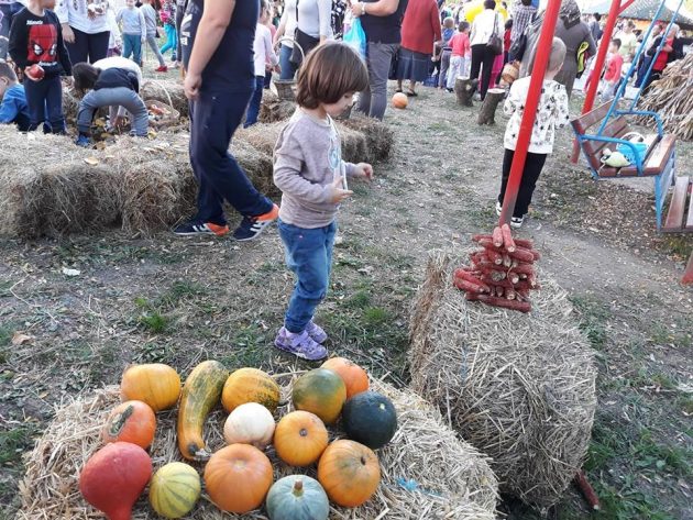 Cu desfăcutul de fasole pentru iarnă dar și bătutul de floarea soarelui. Atelierul ludic - cu jocuri senzoriale de căutat fructe și legume ascunse în grămezile de frunze sau fân, de călcat desculț în lădițe cu: nuci, frunze, porumb, paie, grâu, semințe de floarea soarelui, sau trasee aplicative pe butuci de lemn cu transport de greutăți ca porumb, dovleci, mere, dar și rostogolitul dovleacului printre butuci, joc popice cu dovleac, golf cu nucă în dovleac, construcții piramide din mere și dovleci, căsuțe din coceni porumb, aruncare cerc, piramide din baloți de paie, căsuțe din pănuși de porumb. Atelier gastronomic - unde mămicile au surprins copilașii cu bucate tradiționale apetisante, alături de fructele pline de vitamine.