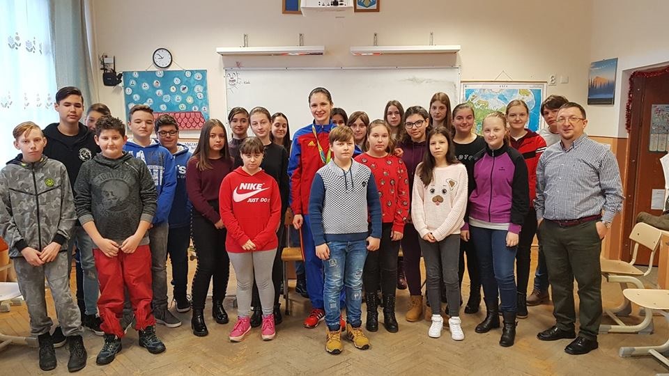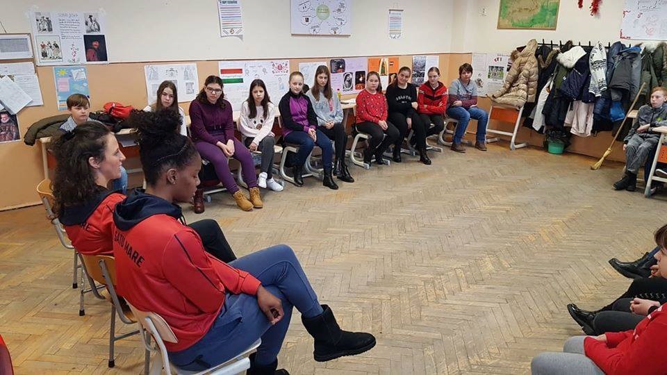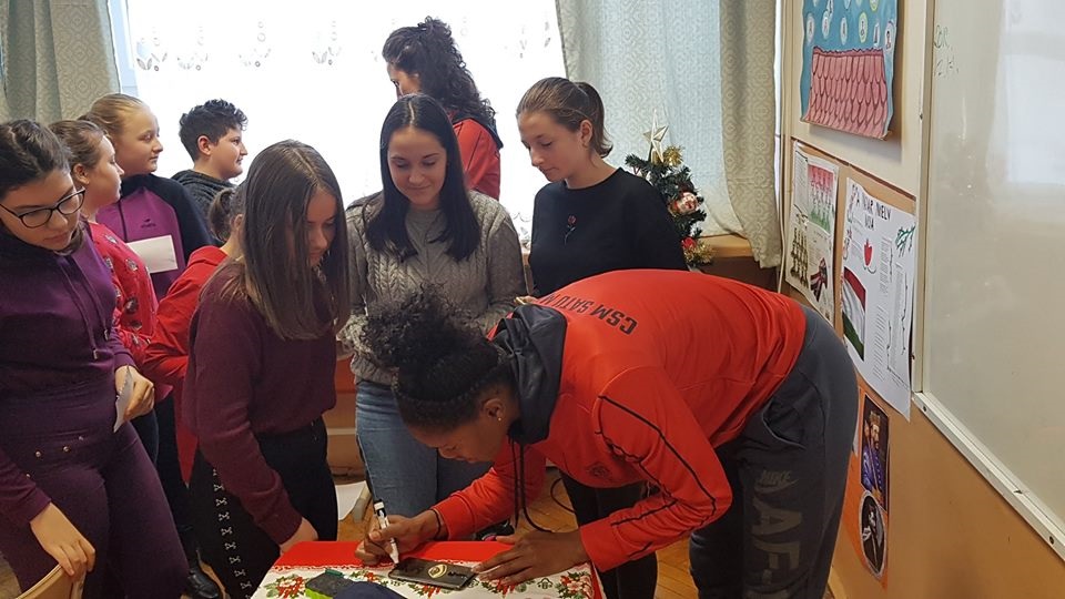 Cele două jucătoare le-au povestit elevilor despre primii lor pași în baschet, despre performanțe și despre tot ce vor să facă după ce se vor retrage din activitate. Cea mai mare surpriză a fost prezența campioanei Simona Pop. Aceasta le-a prezentat importanța practicării sportului, precum și ceea ce înseamnă performanță adevărată. Copiii au putut ține, cu această ocazie, o medalie olimpică de aur în mâini.