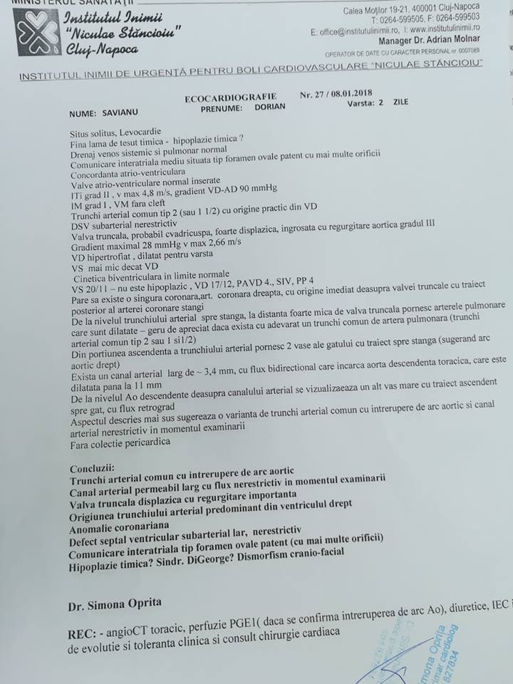 ”In data de 06.01.2019 unui coleg i s-a nascut un baietel, la prima vedere perfect sanatos, insa a doua zi in urma unor controale mai amanuntite a fost diagnosticat cu malformatii la inima! Cea mai mare problema este ca trebuie operat copilasul in 2 saptamani, iar interventia chirurgicala costa 100.000 de euro!