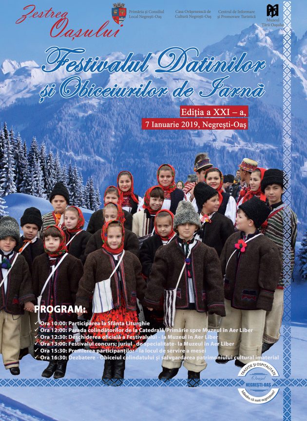 A XXI-a ediție a Festivalului Datinilor şi Obiceiurilor de Iarnă va avea loc luni, 7 ianuarie 2019, la Negrești-Oaș. La tradiționalul eveniment sunt așteptate 20 de ansambluri folclorice, cete și grupuri de colindători din Țara Oașului și din zonele etnografice învecinate: Codru, Maramureș, Chioar.