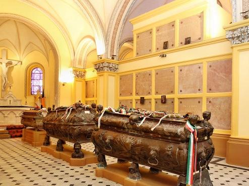 Trupul femeii a fost îmbălsămat şi a fost îngropat abia după o lună, când soţul ei s-a întors din război. Se spune că însuşi împăratul a trimis sicriul şi un dric tras de şase cai în valtrapuri de mare doliu. Cripta este fabuloasă, iar sarcofagele arămite sunt lucrate cu mare măiestrie. În spatele altarului sculptat din marmură de Carrara se află o răstignire, operă a sculptorului florentin Pietro Bazzanti, monument sculptat dintr-o singură bucată de marmură. Tot aici se află blazonul original al familiei Karolyi, cusut cu fir de aur la 1791.