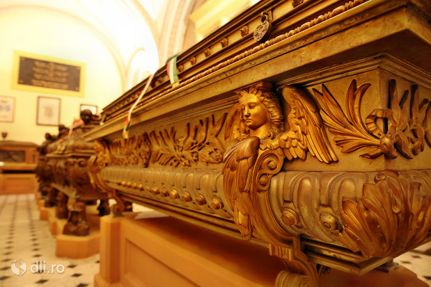 Pe sicriele grofilor Karolyi Antal (1732 – 1798) şi al fiului acestuia, Karolyi Jozsef (1768 – 1803), se află câte o urnă de argint în care sunt inimile îmbălsămate ale soţiilor lor.