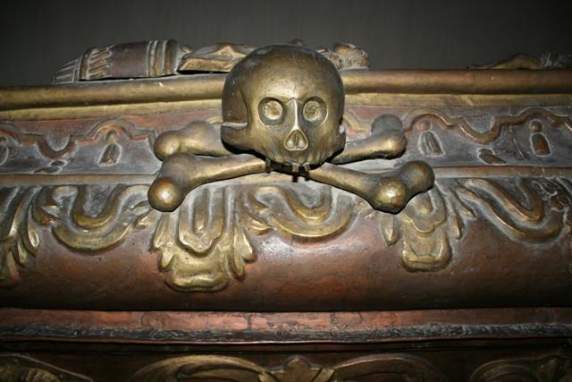 Cripte fabuloase şi sarcofage arămite Un număr de 36 de sicrie cu membrii aceleiaşi familii nobile stau aliniate de zeci şi sute de ani în cripta de la subsolul bisericii din Căpleni.