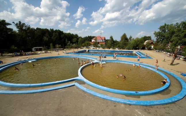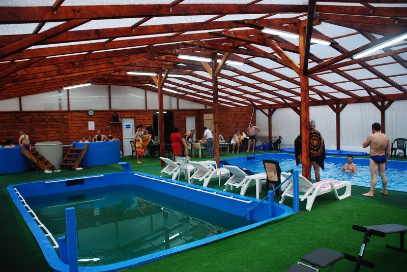 • două bazine mari şi unul mic cu apa minerala rece pentru băi si aerohelioterapie;