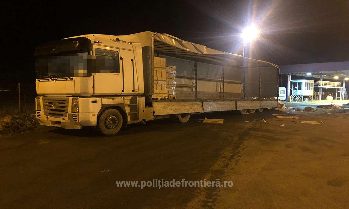 Polițiștii de frontieră din cadrul Punctului de Trecere a Frontierei Halmeu împreună cu lucrătorii vamali au descoperit 829 de baxuri cu pachete de țigări de proveniență ucraineană, ascunse într-un automarfar care transporta brichete din lemn.
