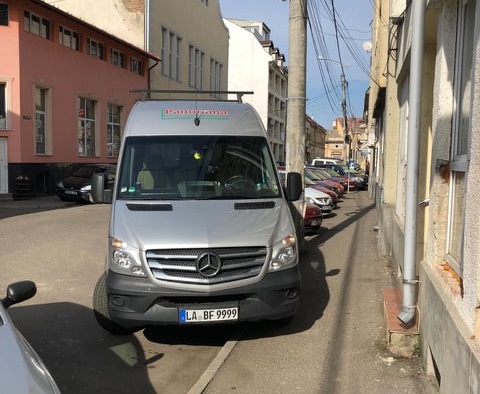 Am văzut de-a lungul timpul enorm de multe parcări nesimțite, dar aceasta, credem noi, le depășește pe toate. Un microbuz, care pare a fi de firmă, cu numere de Germania, și-a permis luxul să ocupe nu mai puțin de PATRU locuri de parcare.