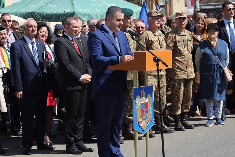 “Sunt foarte emoţionat că mă aflu astăzi aici pentru că este o şansă extraordinară ca un sătmărean, fiu al acestor meleaguri, să aducă astăzi, în calitate de ministru al Apărării Naţionale, un mesaj din partea Armatei României, cea care în urmă cu un veac avea să aducă atâta bucurie în inimile şi în sufletele sătmărenilor.