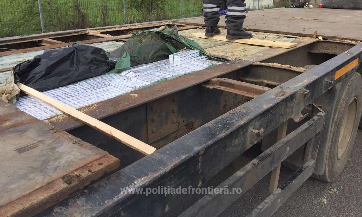 Astfel, a fost descoperită, ascunsă și nedeclarată, în vederea sustragerii de la controlul vamal, în podeaua dublată a semiremorcii, cantitatea de 6.540 pachete cu țigări, de proveniență ucraineană.