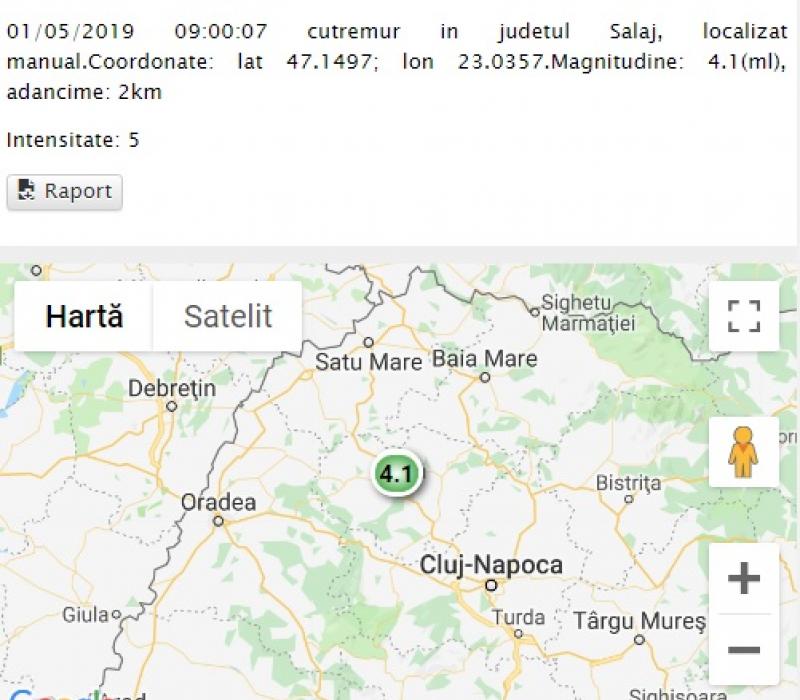 Un cutremur cu magnitudinea de 4,1 pe scara Richter s-a produs miercuri dimineața, la ora 9:00 în județul Sălaj, la o adâncime de numai doi kilometri, informează INFP.