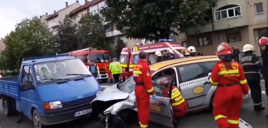 Potrivit purtătorului de cuvânt al IPJ Satu Mare, Paula Gabor, un autoturism condus de un bărbat de 56 de ani din municipiul Satu Mare, având intenția să efectueze un viraj la stânga, nu a acordat prioritate de trecere unui auto care circula din sens opus, condus de un tânăr de 20 de ani, intrând în coliziune cu acesta. În urma impactului primul auto a ricoșat într-o autoutilitară care circula pe același sens cu el. Au fost testați toți șoferii rezultatele fiind negative. Primii doi conducători auto implicați au fost transportați la spital pt îngrijiri medicale.