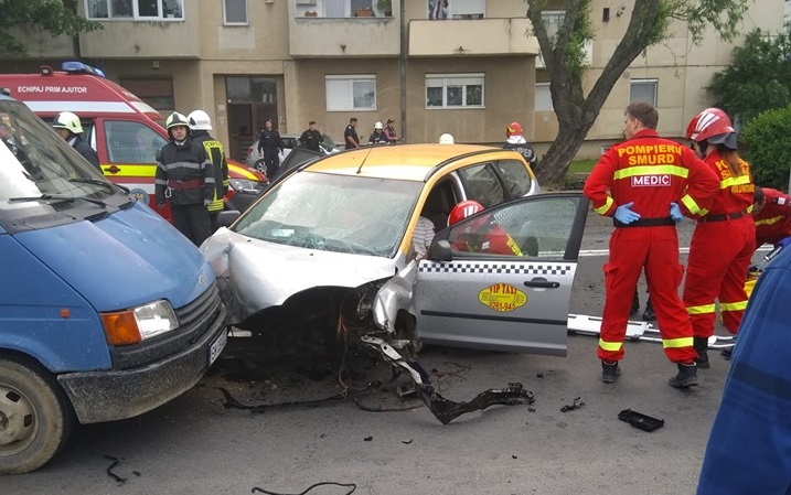 Impactul a fost deosebit de dur, iar taximetristul a rămas încarcerat.