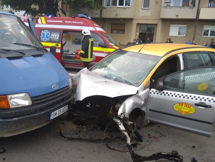 Mai concret, taximetristul de 56 de ani, a încercat să vireze de pe Lucian Blaga pe strada Ambudului, moment în care din sens opus venea mașina Audi condusă de tânărul de 20 de ani.