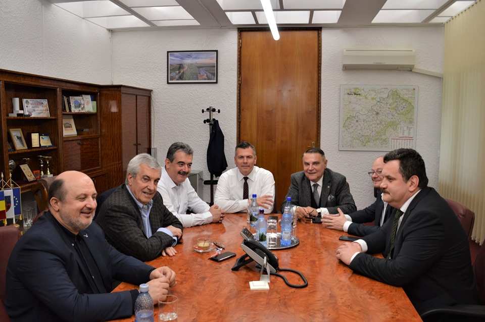În continuarea vizitei sale la Satu Mare, Călin Popescu Tăriceanu a avut întâlniri cu președintele Consiliuliui Județean, Pataki Csaba, cu primarul Kereskenyi Gabor, dar și cu prefectul Darius Filip.