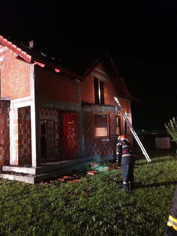 În timpul furtunii de azi noapte, o casă din localitatea Micula a fost lovită de fulger. La fața locului s-au deplasat de urgență 13 subofițeri cu 3 autospeciale reușind să stingă rapid incendiul izbucnit la acoperișul imobilului.