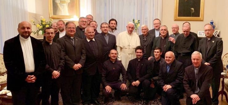 S-a întâlnit cu iezuiții din Satu Mare Papa Francisc s-a întâlnit vineri, în cadrul primei zile a vizitei sale la București, cu iezuiții din România, inclusiv cu cei din județul Satu Mare, respectiv Iulian Budău SJ și Mihai Orban SJ.