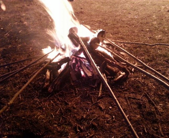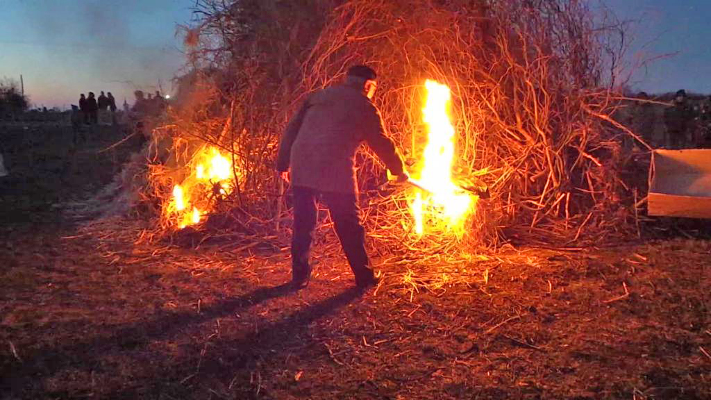Al treilea obicei, legat de postul Paştelui, nu se mai păstrează, fiind documentat la începutul secolului al XX-lea. S-a desfăşurat în prima duminică a postului mare. Cu o zi înainte, pe păşune a fost ridicată o colibă din trestie, în faţa căreia a fost pusă o laviţă sau un scaun. Flăcăii satului mergeau la colibă, unde erau aşteptaţi de fete, care cântau în jurul colibei sau se rugau în genunchi la intrare. La sosirea flăcăilor, o fată aprindea coliba cu o lumânare sfinţită. Flăcăii aveau la ei 15 sau 20 de cercuri de lemn de dimensiunea de cca. 20 cm, denumite sajbó. Aceste cercuri erau puse, câte unul, pe o bâtă de lemn de un metru şi ţinute în foc până când se înroşeau. Cercul înroşit era aruncat apoi cu bâta, în timp ce flăcăul întreba: „sajbó, sajbó al cui e acest cerc?” Răspunsul era numele Sf. Fecioare, al Sf. Iosif, sau al unui alt sfânt. Începând cu conducătorul flăcăilor, fiecare băiat arunca un cerc şi era strigat numele unui sfânt. La epuizarea sfinţilor, era strigat numele localnicilor. Aruncarea se încheia când se stingea focul. Cei prezenţi cântau cântece bisericeşti, apoi se întorceau tăcuţi acasă.