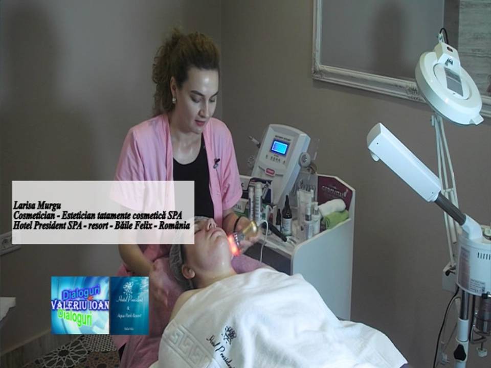 Bună ziua, mă numesc Larisa Murgu, sunt cosmetician – estetician tratamente cosmetică SPA, din cadrul Hotelului ”President SPA & Resort” și m-am gândit ca să vă vorbesc astăzi despre o problemă care ne afectează pe toți … apariția ridurilor. Clienții fac un tratament antirid, pe bază de fiole cu peptide, colagen, elastină, introduse cu un aparat ultrasunet. Ultrasunetele ajută fiolele și substanțele active să pătrundă adânc în piele. Întârzierea apariției ridurilor se mai poate face prin intermediul peelingurilor pe bază de acizi glicolici și lactici, din laptele acru sau iaurt, care ajută la combaterea liniilor fine și la reînnoirea celulelor. De asemenea un procedeu evaziv dar foarte eficace este dermapenul, prin intermediul căruia se formează micro-canale, cu ajutorul acestuia razele pătrunzând mult mai bine în derm, creându-se o rejuvenare … un efect de lifting facial”.