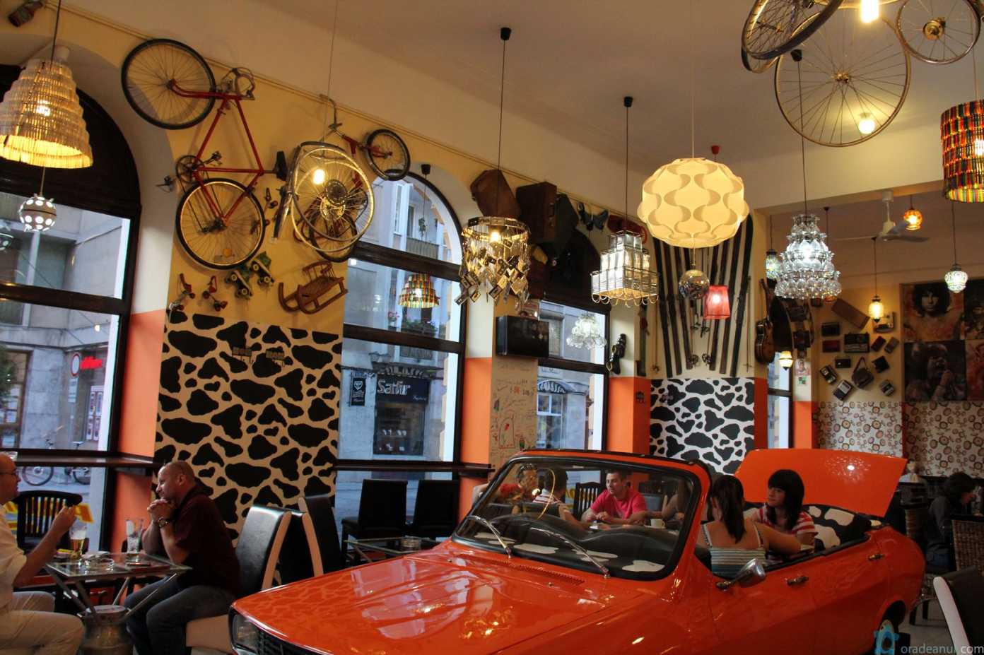 Lactobar Lactobar este cel mai căutat şi mai interesant restaurant din Oradea. Localul se află pe strada Republicii şi este decorat cu toate obiectele 100% româneşti din epoca comunistă, şi nu numai. Vă veţi amuza redescoperind clamele de rufe, vinilurile, casetele refolosite pe post de candelabre, aparate de radio, mileurile şi celebrul peşte de sticlă, care era pus pe televizor. Însă, piesa de rezistenţă a locului este o Dacie 1310, unde puteţi chiar mânca.