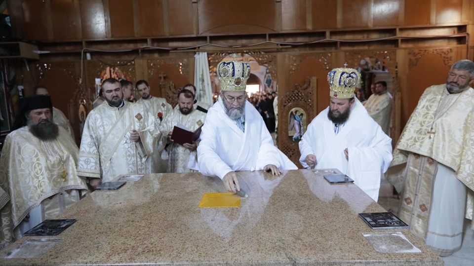 Mii de credincioși s-au rugat duminică la una dintre cele mai mari sărbători care a avut loc în acest an în Țara Codrului: târnosirea bisericii Mănăstirii de la Măriuș.